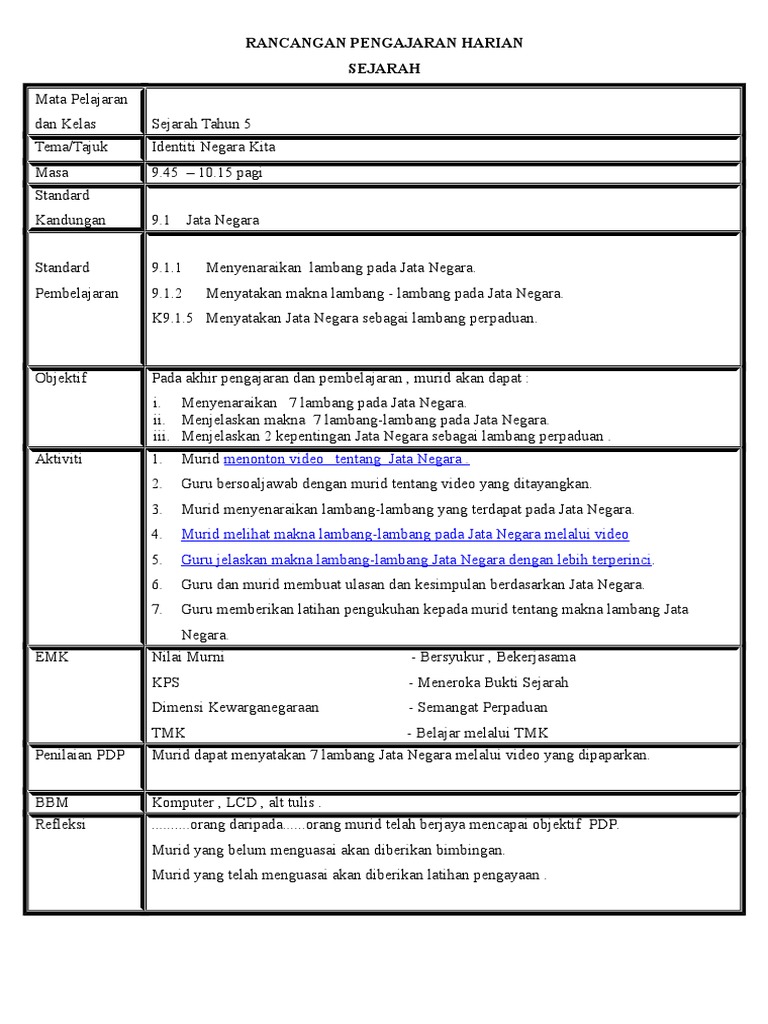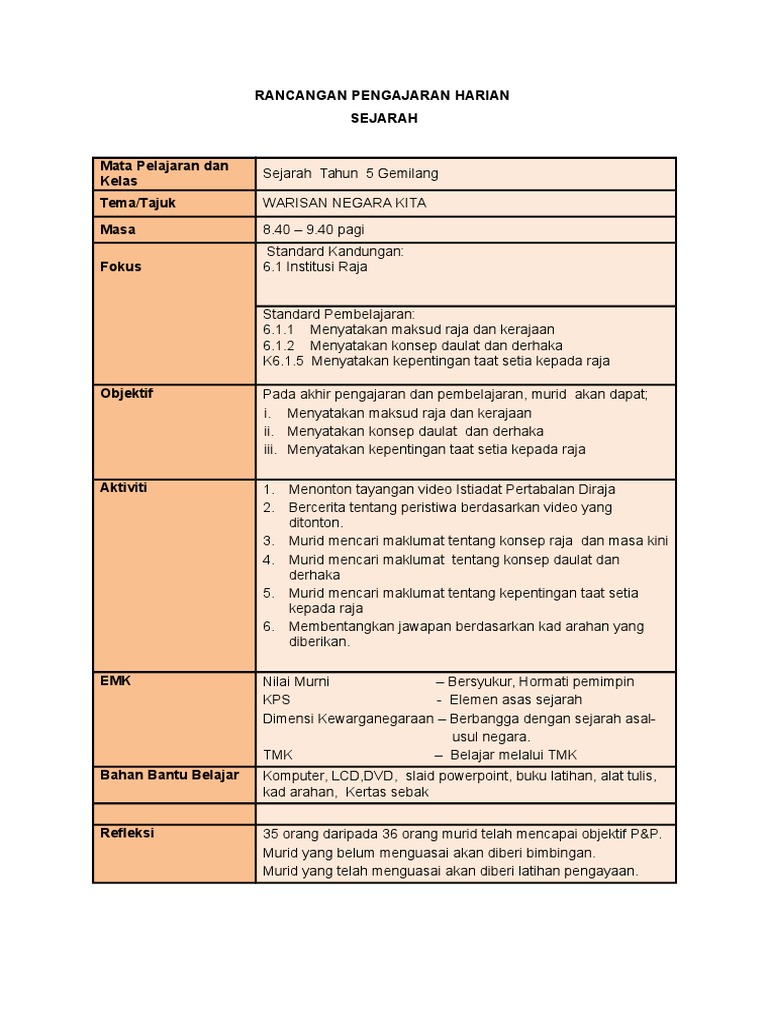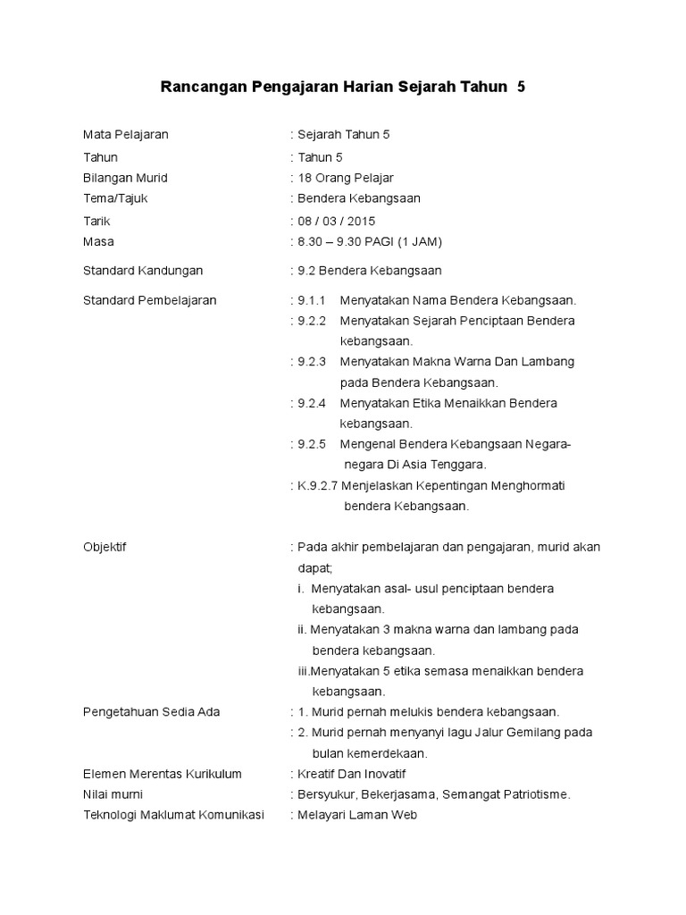 A Rph Sejarah Thn 5 from imgv2-2-f.scribdassets.com Text of rph sejarah tahun 5. Rancangan pengajaran harian (rph) ialah satu rekod khas yang disediakan lebih awal oleh guru sebelum menjalankan sesi pengajaran dan pembelajaran. Ada cerita lucu di sana. Use the download button below or simple online reader. Warisan negara kita tarikh : Translate · rph sejarah tahun5 kp rancangan pengajaran harian sejarah mata pelajaran dan kelas sejarah tahun 5 tema tajuk tema identiti negara kita tajuk 9 bunga course hero. Ditulis oleh unknown selasa, september 24, 2013. Koes bersaudara pernah mengalami yang namanya dipenjara, yaitu tahun 1965 di penjara glodok, jakarta.